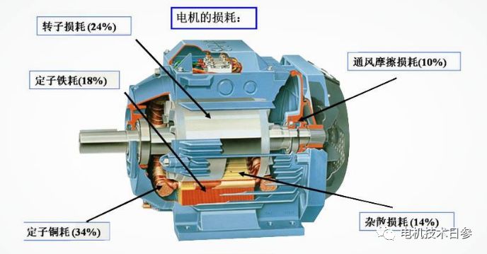 電機損耗可分為恒定損耗和負載損耗。恒定損耗包括風(fēng)摩擦損耗和鐵損耗,鐵損耗是電機在運行過程中的固有損耗。與電氣材料、制造工藝、結(jié)構(gòu)設(shè)計、轉(zhuǎn)速等參數(shù)有關(guān),與負載無關(guān)。包括負載損耗定子銅損耗、轉(zhuǎn)子銅損耗和雜散損耗,以及繞線轉(zhuǎn)子電機碳刷和外部電路的電氣損耗。