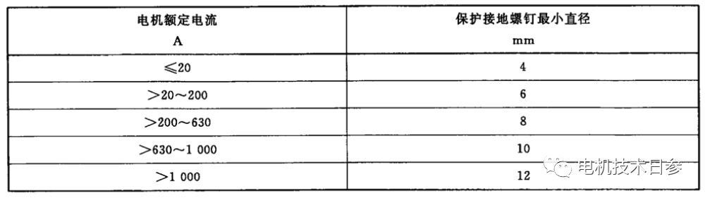 保護接地端子的螺釘和接地導(dǎo)體應(yīng)有足夠的截面,保護接地螺釘?shù)淖钚≈睆饺绫?所示。