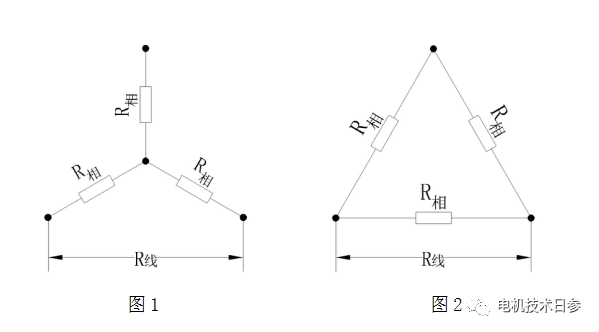 當(dāng)電機(jī)的定轉(zhuǎn)子三相繞組在電機(jī)內(nèi)部已經(jīng)接成星形(Y)或三角形()時(shí),只能測(cè)量每?jī)蓚€(gè)外接線端的電阻(即線電阻),然后通過(guò)公式換算出相應(yīng)的相電阻。
