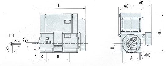 YKK系列IP44 、IP54 6KV 高壓三相異步電動(dòng)機(jī)安裝及外形尺寸